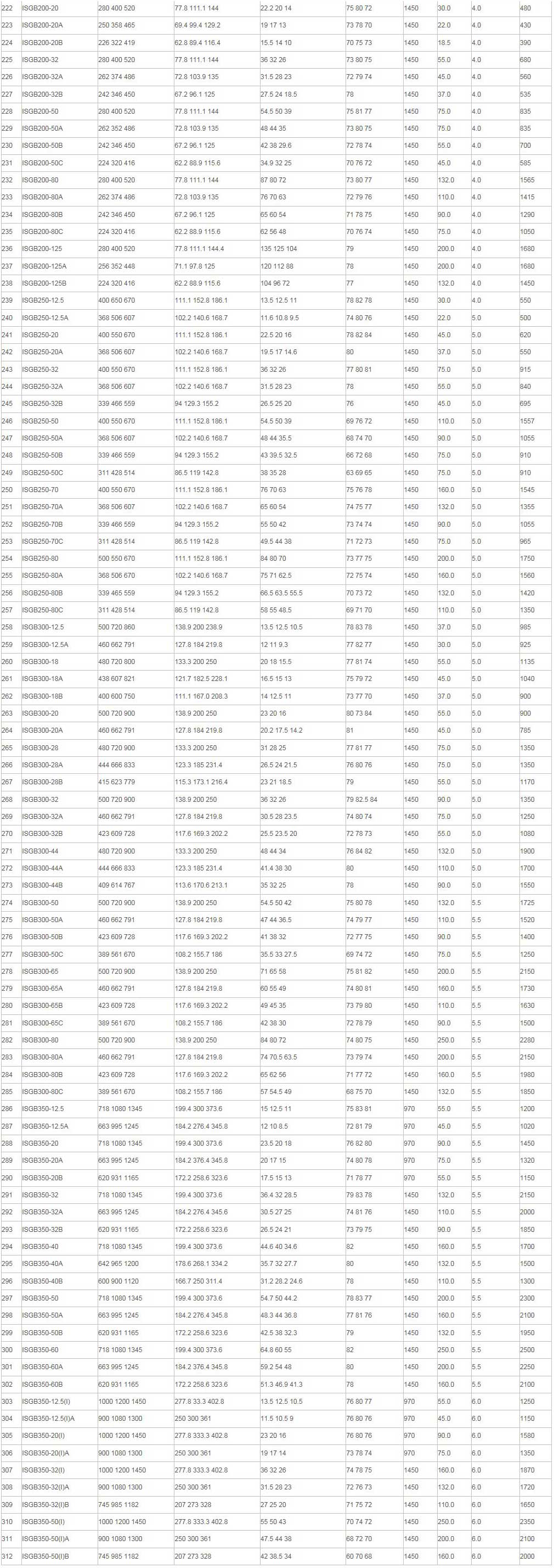 1、ISGB型便拆式管道泵系统高工作压力为1.6MPa,即泵吸入口压力+泵扬程≤1.6MPa(泵扬程工作压力大于1.6MPa时应在订货另行提出,以便在制造时泵的过流部件和联接部件采用铸钢)。